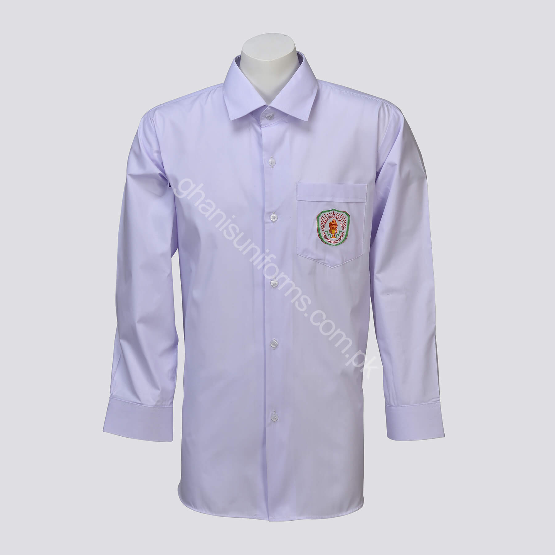 Order these full-sleeve BVS school uniform shirts that provide a comfortable fit across your chest and an excellent look. You’ll enjoy all-day comfort in these shirts. They feature a school monogram on the front pocket and are available in four different colors: navy blue, green, red, and sky blue. Its front closure buttons are of premium quality.