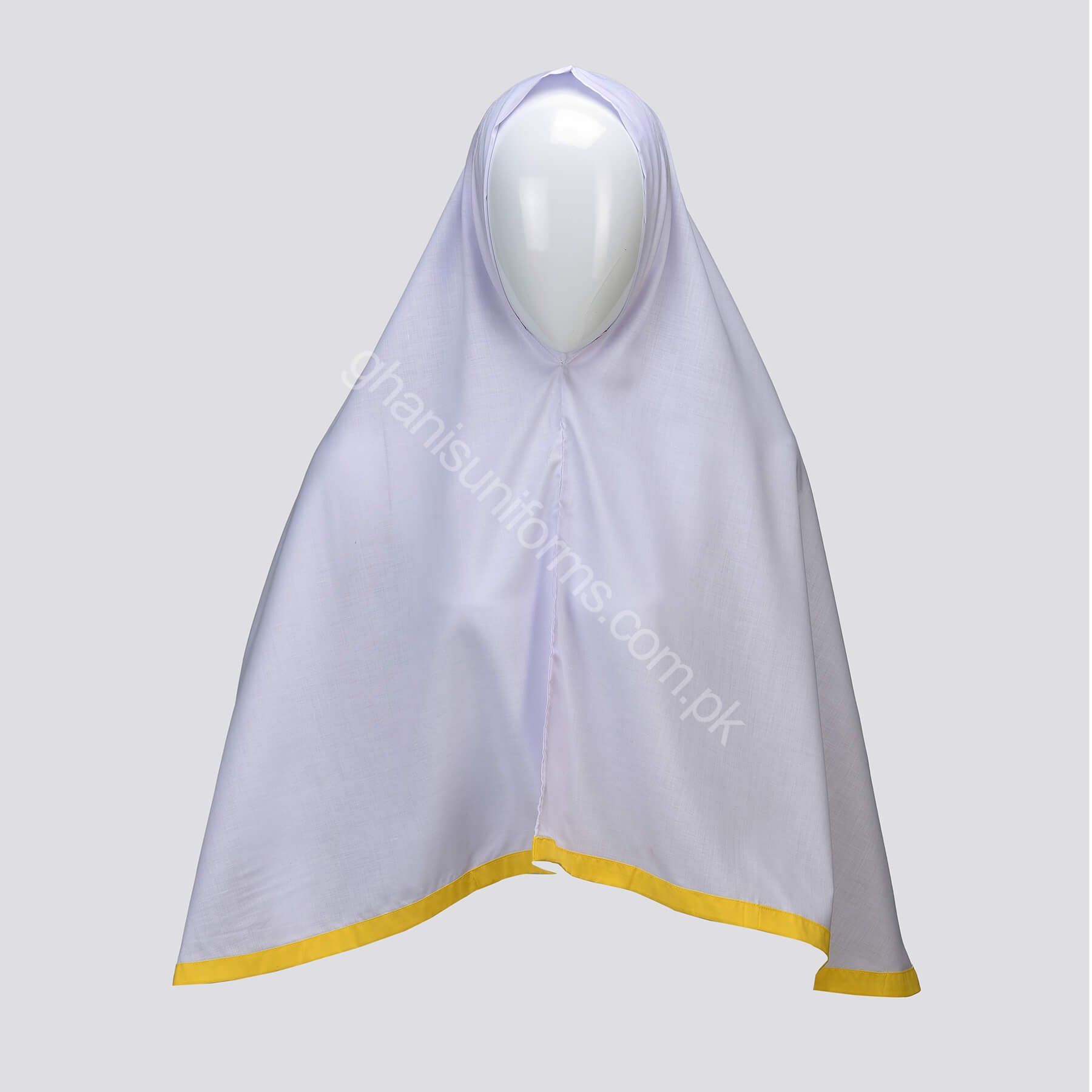 Get a beautiful look while wearing this Generation School Girls Uniform Scarf Dupatta, a perfect addition to your attire. It comes in white with three different bottom border colors: blue, green, and yellow. Apart from school, it can also be worn in tuition classes or any other Islamic class.